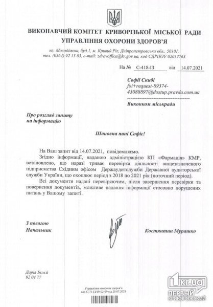 У Кривому Розі триває перевірка комунального підприємства «Фармація».