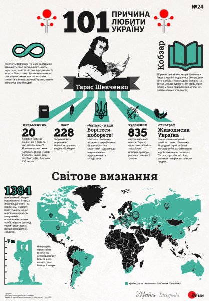 Шевченко провчився всього 2 класи у церковно-приходській школі. У той же час він видав одну із найпопулярніших книг української літератури — «Кобзар». Збірник поезій перевидавали понад 8 мільйонів разів.
