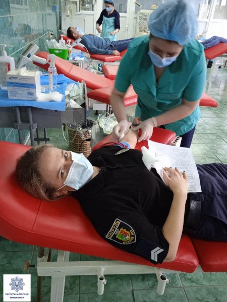Криворожские патрульные сдали кровь, чтобы помочь людям, которые