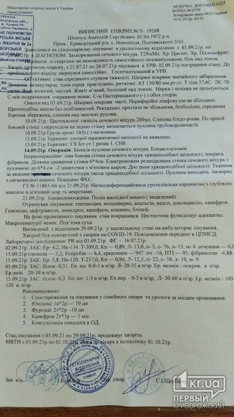 В октябре 2021 года медики Криворожского онкодиспансера диагностировали у Анатолия рак мочевого пузыря (низкодиференциальная уротелиальная карцинома).