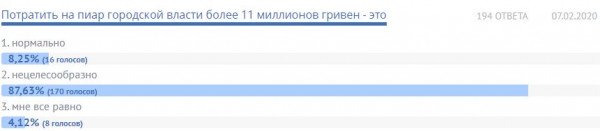 Трату 11 000 000 гривен на пиар городской власти криворожане считают нецелесообразной, — результат опроса