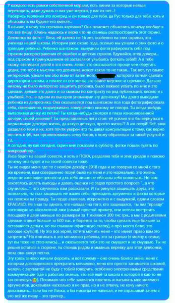 На снимке была девочка, которая на тот момент училась в восьмом классе. Девочка показала переписку социальному педагогу и объяснила, что какой-то парень манипулировал её доверием и опубликовал её фото.