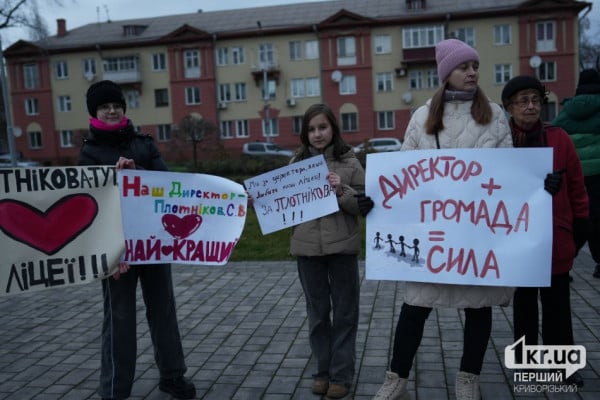 С момента его увольнения с этой должности прошло уже три месяца. За это время родители и ученики учебного заведения несколько раз выходили на митинги, в том числе и к зданию городского совета. Десятки людей хотели поддержать экс-директора после ряда попыток криворожских пабликов очернить его имя и требовали вернуть Плотникова на должность.
